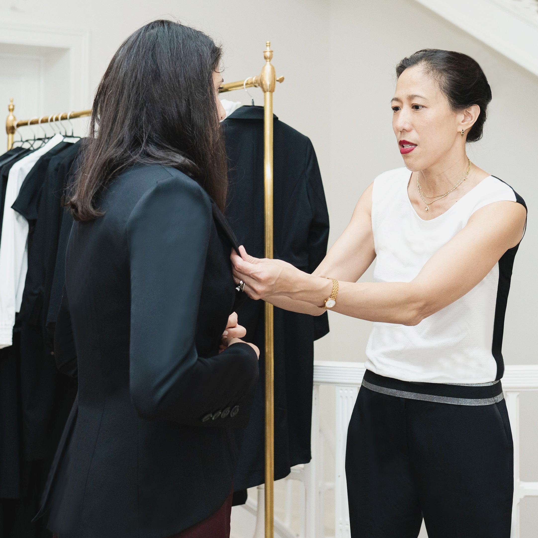Try on & choose any item from our ready-to-wear collection, and we will cut to your precise measurements in your chosen fabric/colour, so that you can have your personalised version of our iconic pieces perfectly fitted to flatter your silhouette & serve your lifestyle needs.